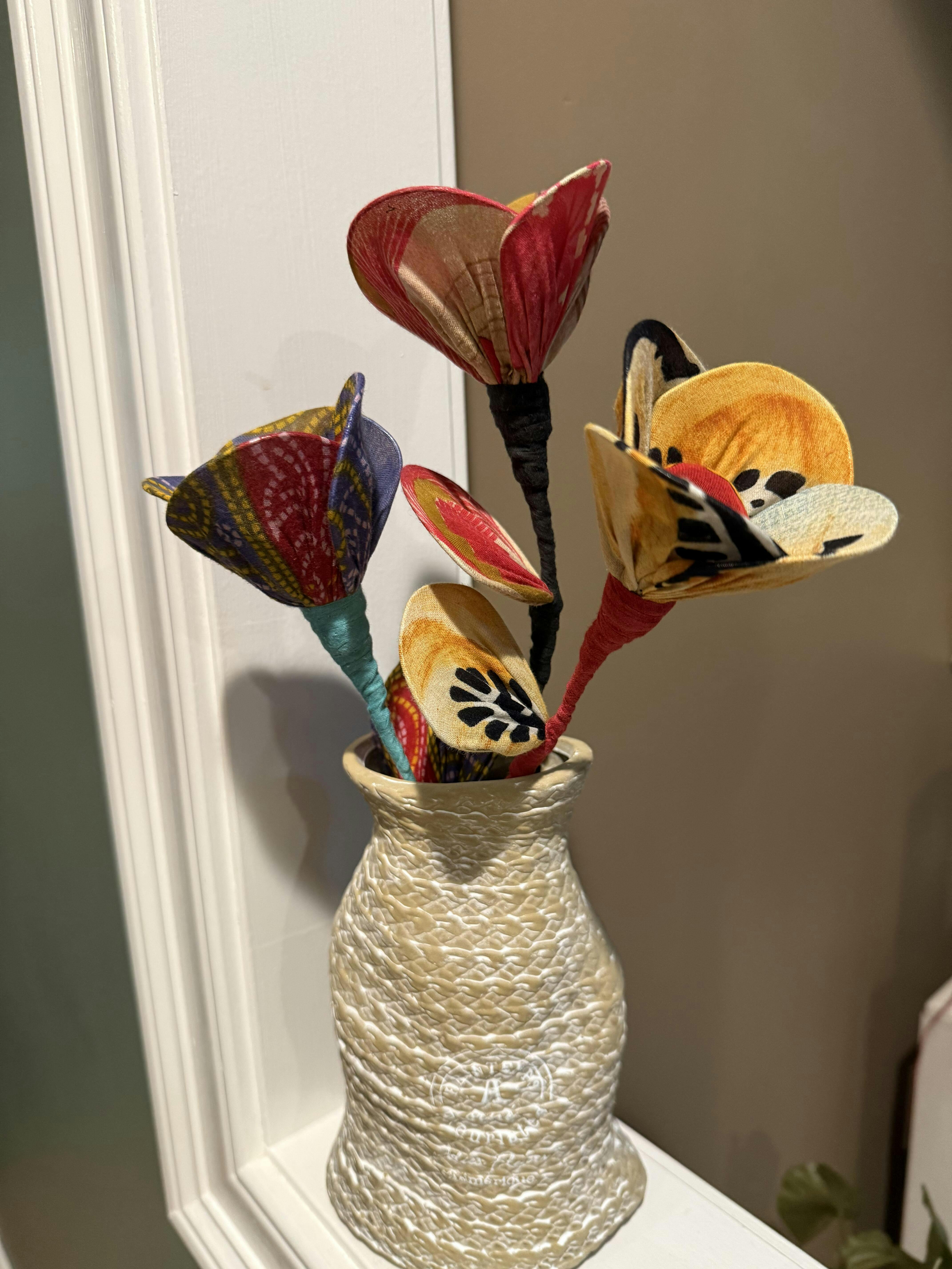 We loooove that you found a perfect vase for the sari flowers! We've recommended the combination that you discovered to others! Thank you!